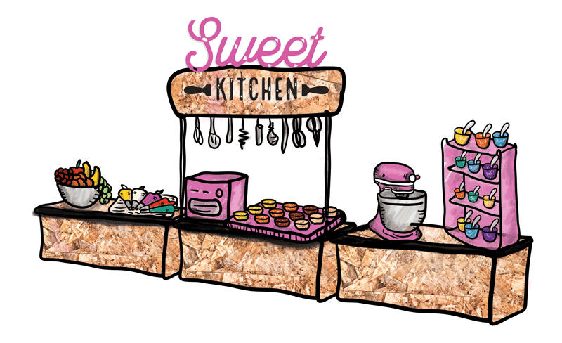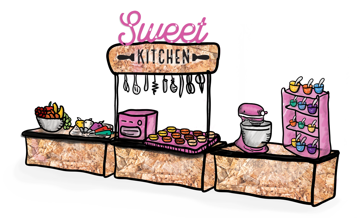Sweet Kitchen olarak seyyar mutfağımızla etkinliğinize gelelim. Katılımcılar istedikleri atıştırmalıkları kendileri tasarlasın. Cupcakelerden, müslilere, şekersiz kurabiyelerden, rengarenk doğal lezzetlere kadar Sweet Kitchen'da elbet sizin damağınıza göre bir şölen var.